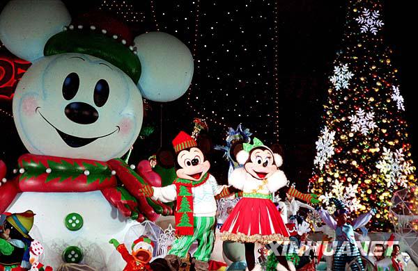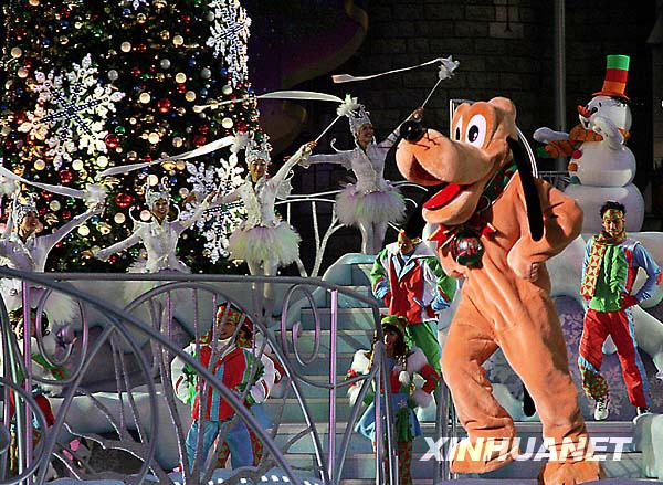 11月7日,在日本千葉縣浦安市,東京迪斯尼樂園為游客表演圣誕新節目--米奇的歡樂下雪時光。隨著圣誕節的臨近,東京迪斯尼樂園的圣誕季慶典活動7日已拉開了序幕。裝點一新的樂園、盛裝的卡通人物向游人宣布了圣誕季的到來。今年的圣誕季活動將一直持續到12月25日。
