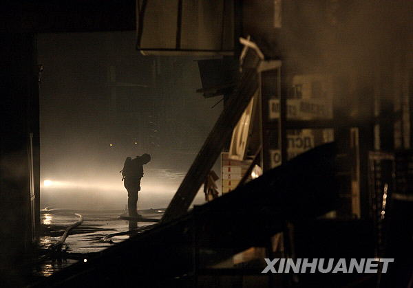 11月10日,俄羅斯消防員在首都莫斯科的火災現場滅火。當日,莫斯科市南的一家建材市場發生火災,過火面積超過500平方米,截至發稿時未有人員傷亡的消息。