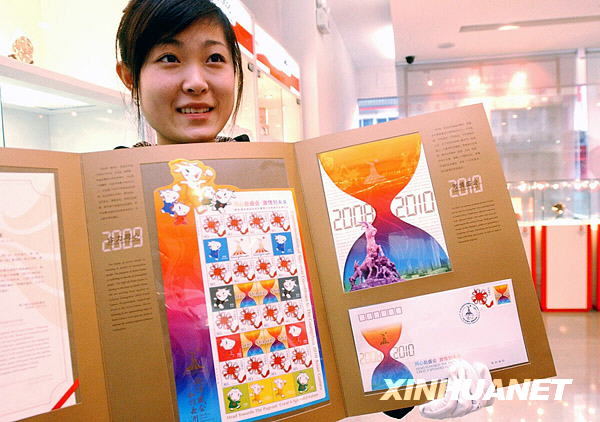 11月11日,一名工作人員展示第16屆亞運會紀念郵品。當日,由廣東省集郵總公司發行的第16屆亞運會兩周年倒計時紀念郵品在遼寧省沈陽市亮相。整套郵品包括整版郵票、明信片及紀念封,限量發行3萬套。第16屆亞運會將于2010年11月12日在廣州舉行。