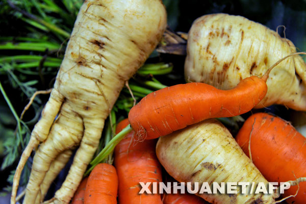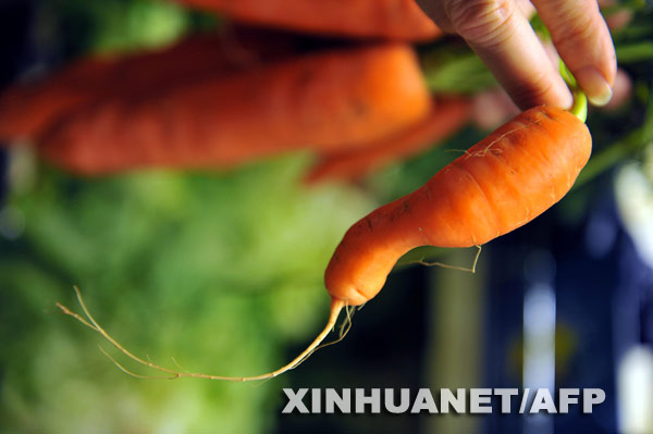 這是11月12日在法國諾曼底拍攝的蔬菜。眾多“長相”欠佳的蔬菜和水果因為其貌不揚而一直被歐盟禁止銷售。但歐盟成員國12日達成妥協,廢除對黃瓜、胡蘿卜、蘆筍、櫻桃等26種蔬菜和水果在外觀和大小方面的要求,對蘋果、柑橘、獼猴桃和西紅柿等10種常見蔬果的規定則予以保留。但“外形”欠佳的上述10種蔬果被貼上“有待加工”等適當標識后允許銷售。 新華社/法新