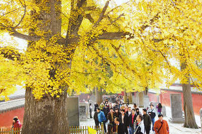 雖已進入初冬,但游客游覽少林的熱情未減。作為2009年全國唯一一個申報世界文化遺產項目的河南省登封市嵩山歷史建筑群,在通過一系列的環境整治后,與周邊環境更加和諧一體,令眾多游客流連忘返。圖為11月13日,游客倘佯在著名的少林寺碑刻與珍貴樹木間。