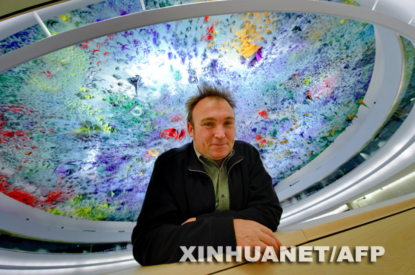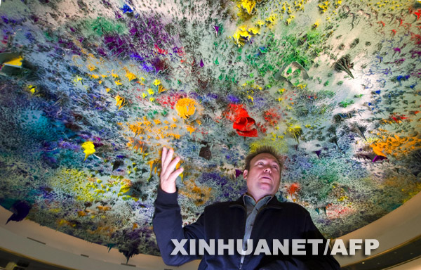 11月17日,在位于紐約的聯合國總部,西班牙現代藝術家米克爾·巴爾塞洛站在他設計的會議廳天花板下。這間耗資約2320萬美元的新會議廳11月18日正式啟用,作為聯合國人權理事會的辦公場所。新華社/法新