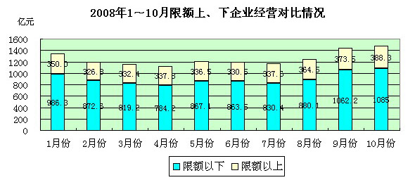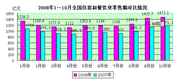 附:2008年1-10月全國住宿和餐飲業零售額圖表