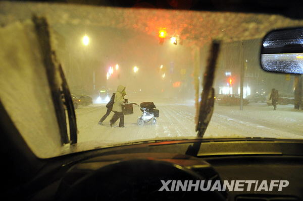 11月23日,在芬蘭首都赫爾辛基,人們走過大雪覆蓋的街道。新華社/法新
