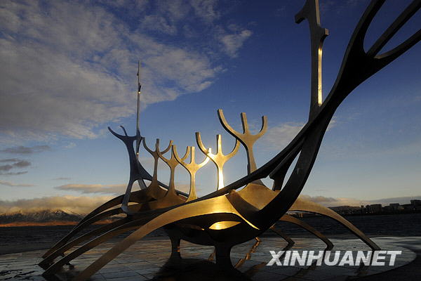 圖為11月22日拍攝的雷克雅未克海邊維京船骨架雕塑。這里是歷史上第一批維京人登陸冰島的地點。維京人是現代冰島人的祖先。維京船骨架也就成了今天雷克雅未克的一個標志。 |