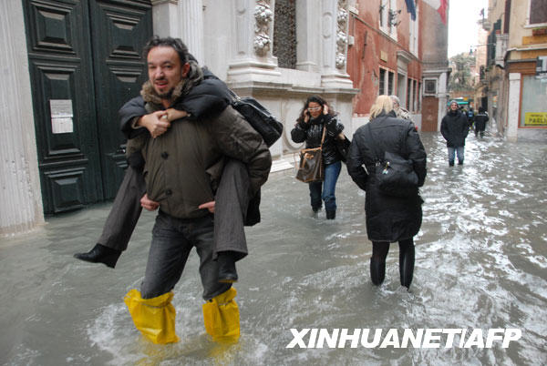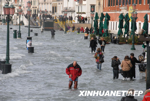 當天,由于海水上升,威尼斯城幾乎所有街道都被海水淹沒,圣馬可廣場上的水深達80厘米。威尼斯當局發出警報,稱海水可能要比正常水位上升1.6米,水城威尼斯真的變成了“水城”。新華社/法新 | |