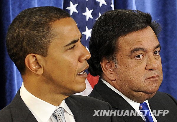 12月3日,美國當選總統奧巴馬(左)在芝加哥舉行新聞發布會,提名新墨西哥州州長比爾·里查森(右)為新政府商務部長人選,并稱里查森將成為美國未來經濟外交的主要人物之一。新華社/法新