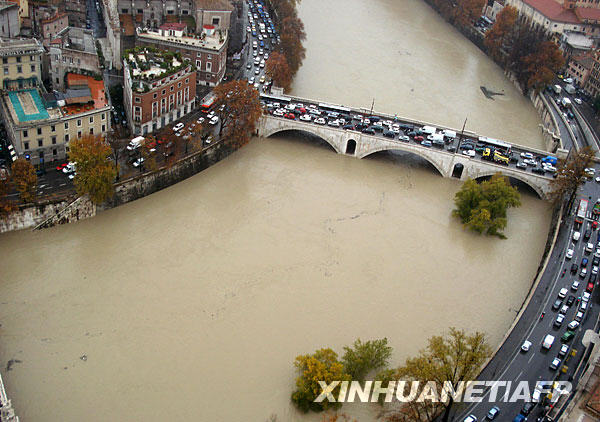 這張12月12日發布的照片顯示,意大利首都羅馬的臺伯河水位高漲。連日大雨和雷暴天氣擾亂了羅馬的交通,并導致1人死亡。羅馬市長詹尼·阿萊曼諾宣布羅馬進入緊急狀態。 新華社/法新