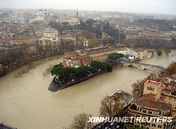 12月12日,在意大利首都羅馬市中心,環繞蒂貝里納島的臺伯河水位高漲。連日大雨和雷暴天氣擾亂了羅馬的交通,并導致1人死亡。羅馬市長詹尼·阿萊曼諾宣布羅馬進入緊急狀態。新華社/路透