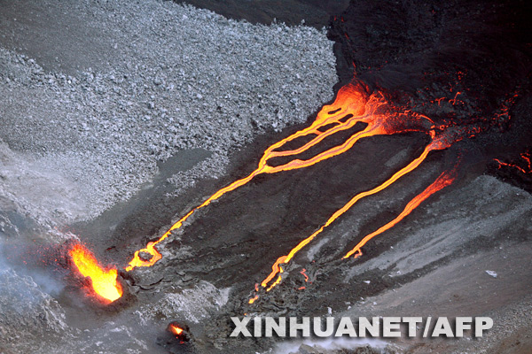 12月15日,法屬留尼汪島上的富爾奈斯火山噴發出熔巖。留尼汪島是法國四個海外省之一,島上的富爾奈斯火山海拔2631米,是世界上最活躍的活火山之一。新華社/法新