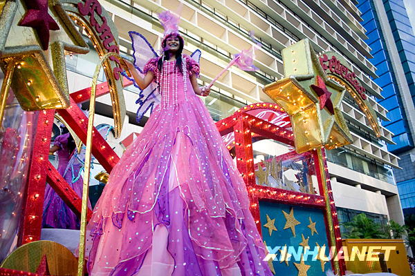 12月14日,在巴拿馬首都巴拿馬城,一名女子扮成仙女站在花車頂部。當日,巴拿馬城舉行了一年一度的花車游行狂歡活動,迎接圣誕節的到來。