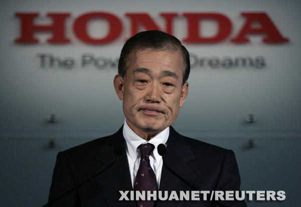 12月17日,本田汽車公司總裁福井威夫出席在日本東京總部舉行的年度新聞發布會。受全球經濟不景氣以及近期日元升值等因素影響,本田當天宣布第三次調低其年度營業利潤預期目標至1800億日元(20億美元),較以前的預期減少60%多。新華社/路透