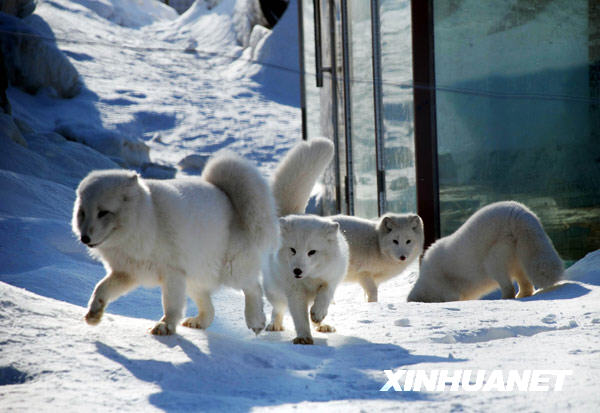 12月25日,幾只北極銀狐在長春市伊通河畔的冰雪樂園嬉戲。日前,7只可愛的北極銀狐在長春市伊通河畔的冰雪樂園與游人見面,吸引眾多游人的目光。銀狐原產于北美洲北部、西伯利亞東部地區,是赤狐在野生自然條件下的毛色突變種,其體形外貌與赤狐相同,只是在毛色上有巨大差異。