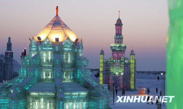 1月4日,游客在哈爾濱冰雪大世界游覽。