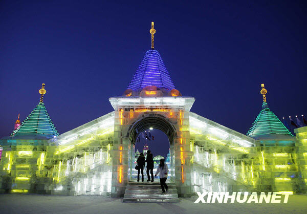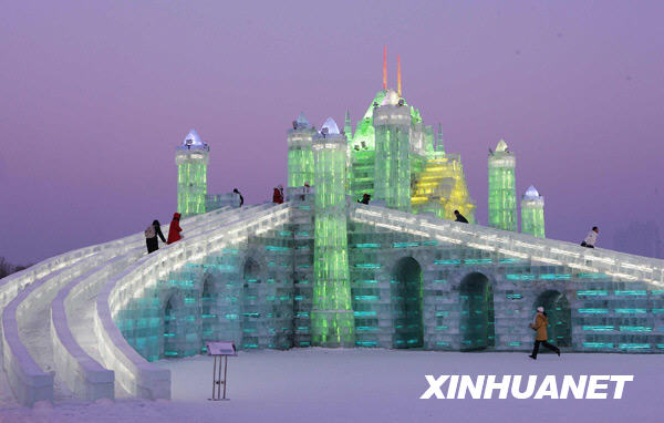 1月4日,游客在哈爾濱冰雪大世界游覽。冰雪大世界是哈爾濱國際冰雪節的龍頭品牌,它匯天下冰雪藝術之精華、融世界冰雪游樂于一園,場面恢宏壯闊,造型大氣磅礴,景致優美絕倫,被譽為恢宏壯闊的“冰雪史詩畫卷”。