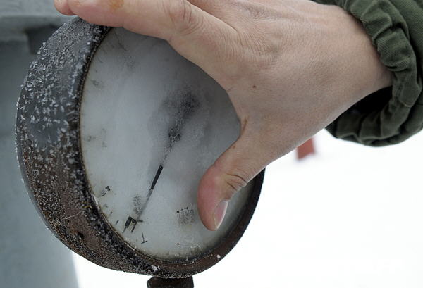 1月7日,在斯洛伐克東部城鎮大卡普沙尼一處邊境天然氣站,一名員工查看讀數為零的氣壓表。新華社/法新