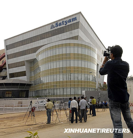 1月8日,媒體記者在印度薩特亞姆電腦服務公司位于海德拉巴的總部大樓外等候。新華社/路透