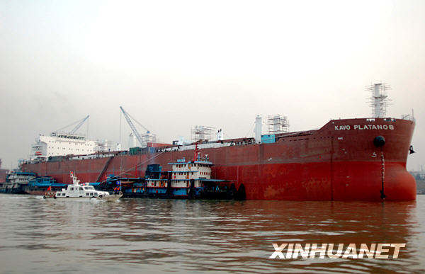 1月15日,“卡瓦·普拉塔諾斯”號5萬噸級海輪下水。當日,在兩艘大馬力拖輪的拖帶下,武漢青山船廠建造的5萬噸級的“卡瓦·普拉塔諾斯”號海輪順利下水離開青山船廠碼頭!翱ㄍ摺て绽Z斯”號散貨船是為希臘一家企業量身定做,由武漢青山船廠建造。船舶總長189.99米,主體高18米,最大吃水8米,價值3000多萬美元。據稱,該海輪是長江沿線建造的最大噸位海輪。