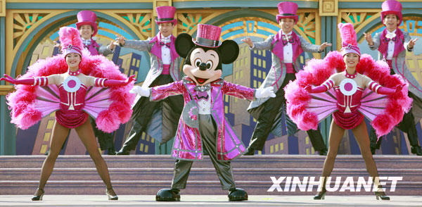 1月19日,在日本東京附近的迪斯尼樂園,米奇和米妮穿上嶄新的服裝在舞臺上表演。