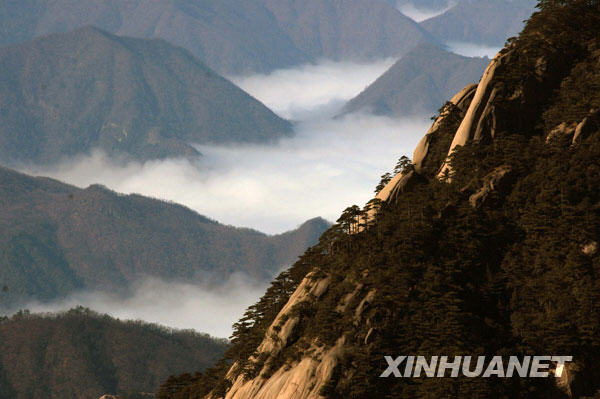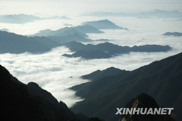 1月31日拍攝的安徽黃山云海。當日,黃山風景區出現大片云海,云海持續時間長達10小時之久,十分罕見。