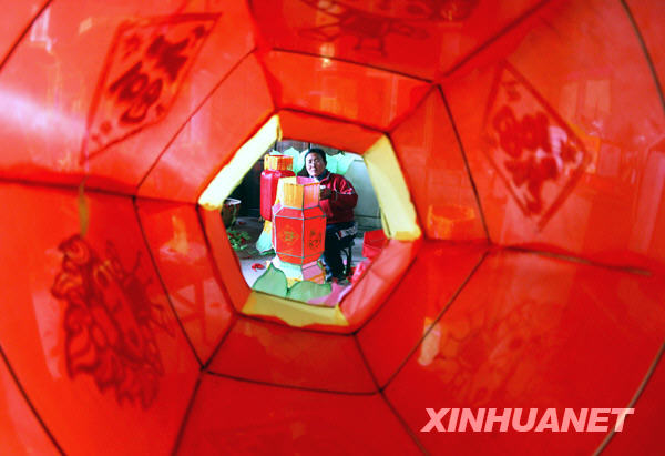 2月3日,在稷山縣稷峰鎮楊趙村,一名村民在趕制花燈。在山西省運城市稷山縣楊趙村的花燈加工作坊里,手工藝人們運用傳統工藝,趕制各式花燈,喜迎元宵佳節。