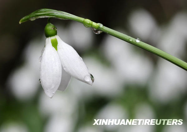 2月3日,一朵雪花蓮在馬其頓首都斯科普里的一個庭院內開放。雪花蓮屬植物是春天最早開花的球根花卉。新華社/路透