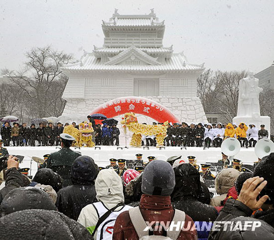 2月5日,在日本札幌的大通公園,人們參加第60屆札幌雪節的開幕式。本屆雪節將持續到2月11日,期間將有數百座雪雕和冰雕作品與觀眾見面。日本札幌雪節與加拿大的魁北克雪節、中國哈爾濱冰雪節、挪威的雪節并稱世界四大冰雪盛會。新華社/法新