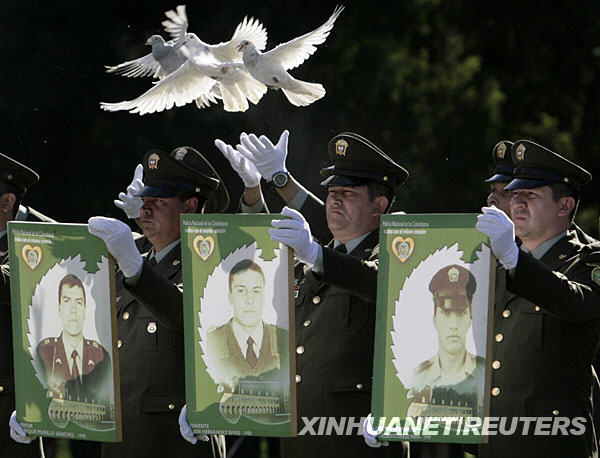 2月4日,在哥倫比亞波哥大附近的一所警察學校,警察們放飛和平鴿,向被反政府武裝組織“哥倫比亞革命武裝力量”綁架的戰友們致敬。目前,“哥倫比亞革命武裝力量”扣押著700多名人質。新華社/路透