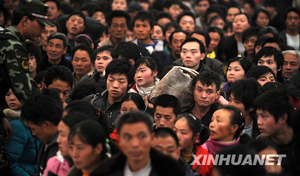2月5日,旅客們在成都火車北站等候上車。成都鐵路客流近幾日持續上升,主要以農民工為主,目的地為北京、上海、廣州等地。據鐵路部門預計,2月10日前,成都火車北站的日客流量將保持在8萬人次以上。