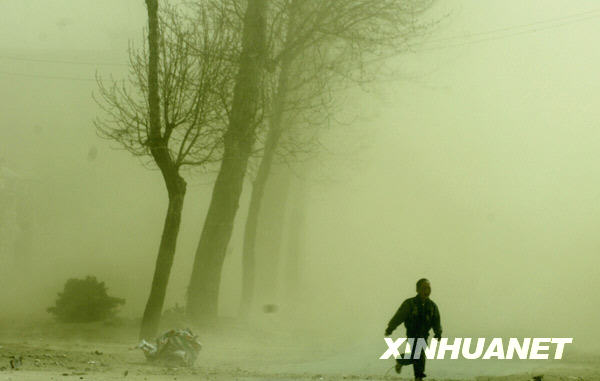 2月11日,一名孩子在躲避沙塵。當日,拉薩機場出現揚沙天氣,能見度明顯下降,造成市民出行不便。每年冬春季節是拉薩周圍揚沙天氣的多發期。