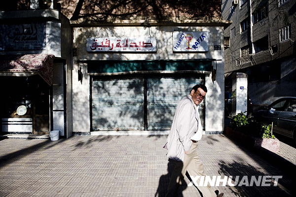 2月17日,一名埃及男子從一家位于埃及首都開羅麥阿迪區的藥店前走過。