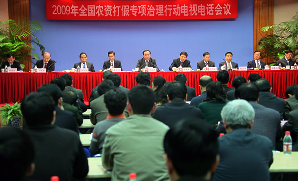 2月17日,全國農資打假專項治理行動電視電話會議在北京召開,農業部、最高人民法院、最高人民檢察院、工業和信息化部、監察部、公安部、工商總局、質檢總局、供銷總社等九部門要求各地立即行動起來,迅速開展2009年全國農資打假專項治理行動,盡快形成打擊制售假劣農資等坑農害農行為的強大聲勢,切實維護農資市場秩序,確保農資質量,滿足生產需要,維護農民權益,為力爭今年糧食和農業有個好收成提供重要保障。 農業部部長孫政才在講話時指出,在當前國內外經濟形勢下,促進農業穩定發展和農民持續增收,關系全局,具有特殊重要的意義。抓好農資打假和監管直接關系農業和糧食生產,關系農民收入和權益,關系市場秩序和社會穩定,各地區各部門要認清形勢,認清使命,充分認識做好當前農資打假監管工作的重要性、緊迫性。一是保持農業穩定發展必須加大農資打假和監管力度。保持農業穩定發展是經濟社會發展全局的需要,當前農產品價格下行,農民生產積極性受到影響;北方遭受嚴重干旱,夏季糧油生產面臨嚴重威脅;國內外重大動物疫情形勢復雜,防控任務十分艱巨,面對嚴峻挑戰,要實現農業穩定發展必須全力以赴做好包括農資打假在內的各方面工作,保證農資數量足、質量優、價格穩。二是促進農民持續增收必須加大農資打假和監管工作力度。國際金融危機的影響逐步顯現,我國優勢農產品出口難度加大,農民務工就業困難,對今年農民增收帶來了嚴重影響。農資支出占農業生產投入的比重很大,購買使用假劣農資不僅增加生產成本,加大農民的支出,而且降低產量,影響農民收益。三是保障農產品質量安全必須加大農資打假和監管工作力度。近年來我國農產品質量安全水平有了很大改善,農產品質量總體上是安全放心的,但影響農產品質量安全的因素仍然存在。確保農產品質量安全必須加強農業投入品監管,農資打假一刻也不能放松。 當前正是抗旱春管深入推進和春耕備耕全面展開的關鍵時期,孫政才要求,各級農業部門要突出重點,加大力度,扎實做好2009年農資打假和監管工作。 一要突出抓好重點農時?购荡汗、春耕備耕期間是種子、農藥、化肥等農資購銷旺季,也是假冒偽劣農資進入市場的高峰時節,要會同有關部門加強農資生產經營企業的登記許可核查,開展農資市場整頓,對不符合條件的,該整改的整改,該吊證的吊證。 二要突出抓好重點產品。以種子種苗、農藥、肥料、獸藥、飼料、農機、水產苗種為重點,嚴厲打擊各種違法生產經營假劣農資和生產銷售使用禁限用農業投入品等違法行為,特別是無證生產經營和未審先推種子、在農藥中違法添加禁用高毒農藥、肥料有效成分不足、無證無批準文號生產經營獸藥、在飼料和動物飲用水中添加違禁添加物、制售假劣農機及零配件、栽苗種生產階段違法使用違禁藥品和有毒有害化學物質的行為。 三要突出抓好重點環節。加強農資產品生產、經營主體的資質審查,對需要審批、審定、登記的農資產品,嚴格執行有關條件、程序和標準,嚴禁降低標準和越權審批,加強行政許可的后續監管。全面摸清農資經營企業的底數,加強農資批發市場、專業市場、集散地和經營門店的日常監管,對無證經營的單位和個人,要堅決依法取締;對近年來群眾投訴舉報多的市場要重點整治。制定農資質量檢測計劃,對重點產品、重點區域、重點監控單位要加大抽檢力度。 四要突出抓好重點案件。鼓勵社會舉報制售假劣農資行為,做到“有報必接,接案必查,查必到底”,通過明查暗訪核實案件線索,采取掛牌督辦、集中辦案、聯合查案等形式嚴查大案要案;及時移送涉嫌犯罪案件,堅決杜絕“有案不送、以罰代刑”;加大典型案例的曝光力度,震懾違法犯罪分子。 五要突出抓好長效機制建設。認真總結開展放心農資下鄉進村的經驗,推廣農資連鎖、農資農技“雙連鎖”、農資行業協會等模式,支持和鼓勵有實力、信譽好的名優農資企業、農資專業合作組織等直接到鄉村設立經營網點,構建新型農資經營網絡,暢通放心農資下鄉進村渠道。加快探索和推進農資信用體系建設,研究制定農資企業信用評價體系和管理辦法。 會上國家供銷總社副主任趙顯人要求各級供銷部門全力以赴保證抗旱救災需要,及時送肥到抗旱一線、到田間地頭,對受災嚴重的農民優惠價供應化肥,確保旱區化肥供應不脫銷、不斷檔。國家工商總局副局長劉玉亭要求各級工商部門要加大監管力度,提高執法效能,認真履行市場監管法定職責,嚴厲查處制售偽劣農資坑農害農行為。國家質檢總局副局長支樹平要求各級質檢部門進一步開展“農資打假下鄉”活動,加大對重點農資產品的執法打假力度,深入推進農資產品質量問題區域整治,逐步健全農資產品質量長效監管機制。 會議由全國農資打假專項斗爭部際協調小組組長、農業部副部長陳曉華主持。出席會議的還有最高人民法院副院長熊選國、最高人民檢察院副檢察長朱孝清、工業和信息化部副部長楊學山、監察部副部長屈萬祥、公安部治安管理局局長武冬立。此次會議在各省、自治區、直轄市及部分市縣設立分會場849個,農業、公安、工商、質檢等農資打假工作領導小組成員單位2.6萬人參加了會議。 據了解,農資打假工作已開展多年,為保障農業穩定發展和農民持續增收做出了重要