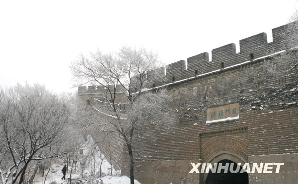 2月18日,雪后的北京八達嶺長城銀裝素裹。