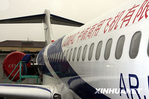 這是曾在2008年11月成功首飛的ARJ21新支線飛機(2月19日攝)。