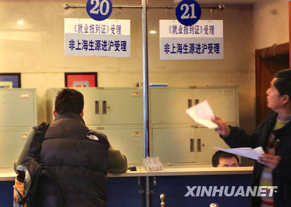 2月23日,在上海市高校畢業生就業指導中心內,相關人員在辦理外地畢業生戶口進滬事務。 | |