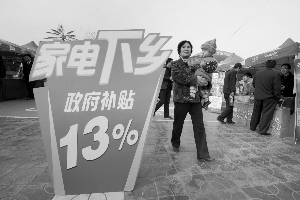 農民在家電下鄉中購買彩電、冰箱等產品,將得到銷售價格13%的財政直補。圖為甘肅省皋蘭縣“家電下鄉”活動現場 新華社