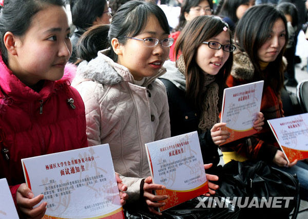 3月1日,在上海市楊浦區舉行的女性就業服務專場活動中,上海東海職業技術學院的幾名女大學生拿到了楊浦區居委會的見習崗位面試通知書!叭恕眹H婦女節前后,上海各區縣將舉辦多場女性就業招聘會,預計提供1500余個崗位,并推出市郊女性就業培訓計劃,幫助婦女姐妹們就業、創業。