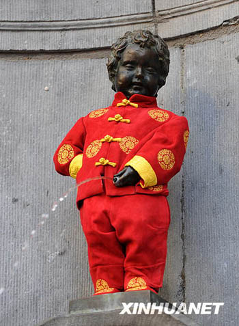 小尿童雕像穿上中國服裝