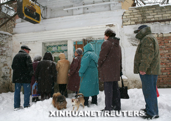 3月4日,在俄羅斯南部城市斯塔夫羅波爾的一家面包廠,人們購買由于生產日期等原因不適合商店銷售的削價面包。新華社/路透