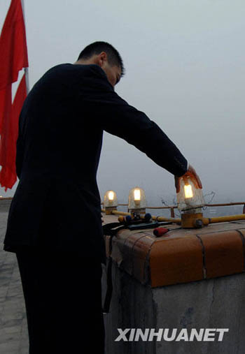 3月4日,工作人員在人民大會堂樓頂檢修夜景照明燈。3月5日,十一屆全國人大二次會議將在北京人民大會堂開幕,當晚,北京市將按照重大節日要求開放夜景照明設施。