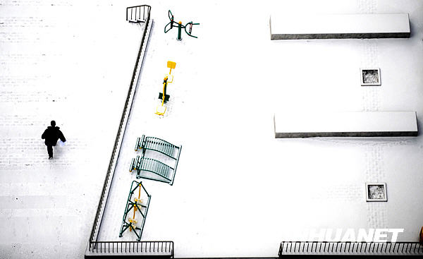 3月6日,一名哈爾濱市民在雪中行走。從3月5日夜間起,冰城哈爾濱市開始降雪,給市民出行帶來影響。