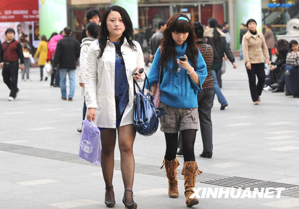 3月9日,兩位身著春裝的姑娘走在南京街頭。 當日,南京天氣晴朗,陽光和煦。雖然俗話說“春捂秋凍”,但沐浴著溫暖舒適的陽光,許多年輕人已迫不及待地換上了春裝。據江蘇省氣象臺報告,南京當天最高氣溫已升至17攝氏度。