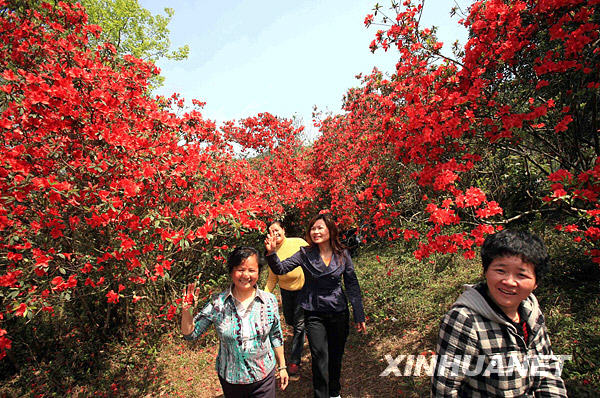3月15日,在廣西融水苗族自治縣懷寶鎮,游客在杜鵑花叢中游玩。陽春三月,位于廣西大苗山深處融水縣懷寶鎮的野生杜鵑花競相綻放,令前來賞花的游人沉醉流連。