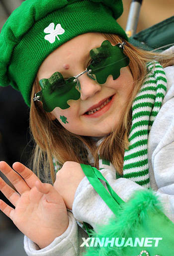 3月17日,在美國紐約曼哈頓,一名小女孩參加圣帕特里克節游行。當日,紐約舉行盛大游行,慶祝圣帕特里克節。圣帕特里克節是愛爾蘭人紀念愛爾蘭守護神圣帕特里克的節日,至今已有1500多年歷史,這一節慶傳統被愛爾蘭移民帶入美國。