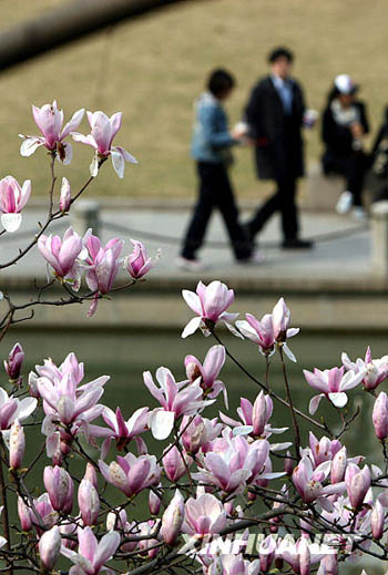 這是公園里綻放的玉蘭花(3月17日攝)。近日,上海出現連續晴好天氣,氣溫回升。街頭玉蘭花紛紛開放,傳遞著春天的氣息。
