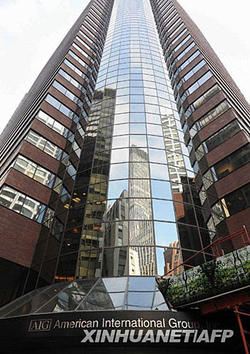 圖為2008年9月17日在美國紐約曼哈頓拍攝的美國國際集團(AIG)辦公樓的資料照片。新華社/法新