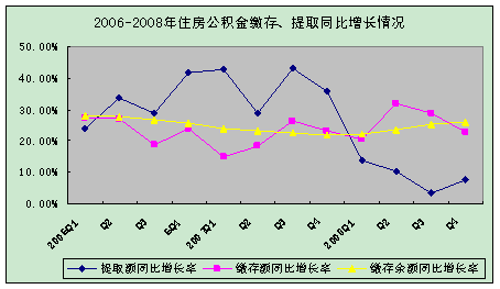 2008年,通過開展加強住房公積金管理專項治理工作,實際繳存職工人數有較大幅度增加。2008年末,全國應繳職工人數11184.05萬人,實際繳存職工人數為7745.09萬人,同比增加557.18萬人,增幅為7.75%。 2008年,繳存額繼續穩定增長,當年全國住房公積金繳存額為4469.48億元,同比增加926.56億元,增幅為26.15%。截至2008年末,全國住房公積金繳存總額為20699.78億元,同比增長27.54%;繳存余額為12116.24億元,新增余額2511.13億元,增幅為26.14%。 2008年,全國住房公積金提取額為1958.34億元,占同期繳存額的43.82%,同比增加149.56億元,增幅為8.27%。截至2008年末,全國住房公積金提取總額為8583.54億元,占住房公積金繳存總額的41.47%。
