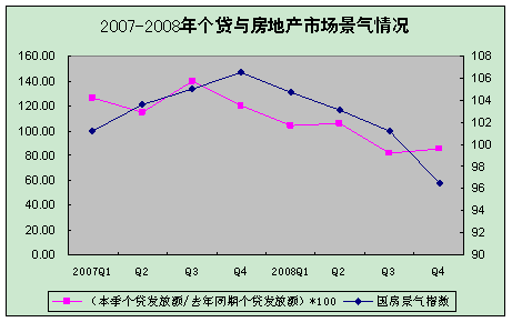 2008年,全國共發放住房公積金個人貸款131.13萬筆、2035.93億元,占當年繳存額的45.55%。截至2008年末,累計為961.17萬戶職工家庭發放個人住房貸款10601.83億元,同比增長23.77%,個人貸款余額為6094.16億元,新增余額1019.83億元,增幅為20.10%,個人貸款余額與商業性個人住房貸款余額比例由2007年末的18.77%上升為2008年末的20.43%。 住房公積金個人貸款與房地產市場景氣情況密切相關,2007年四季度以來,由于房地產市場表現低迷,個人貸款發放呈下降趨勢,2008年三、四季度個貸發放額同比分別減少18.34%、14.95%,全年同比減少165.64億元,降幅為7.52%。2008年末,全國個貸率(個人貸款余額/繳存余額)為50.30%,同比減少2.53個百分點。
