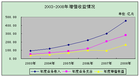 2008年業務收入為453.56億元,同比增加152.67億元,增幅為50.74%。業務支出為283.46億元,同比增加78.48億元,增幅為38.29%。增值收益為170.10億元,同比增加70.49億元,增幅為70.77%。年末貸款風險準備金余額為285.67億元,占貸款余額的4.68%;年末城市廉租住房建設補充資金總額為191.93億元,按規定累計向同級財政上繳96.98億元。