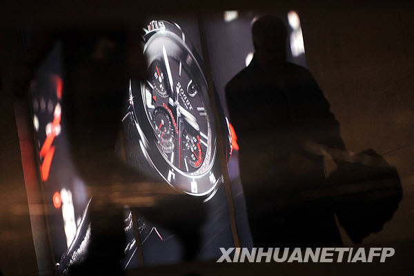 3月25日,在瑞士北部城市巴塞爾舉行的2009巴塞爾名表珠寶展媒體開放日上,參觀者經過帝陀表(Tudor)的展臺。一年一度的巴塞爾名表珠寶展26日在瑞士巴塞爾正式開展。盡管金融危機對鐘表珠寶產業產生沖擊,這個全球最大的鐘表珠寶展依然吸引了來自世界各地的展商參展。新華社/法新 |